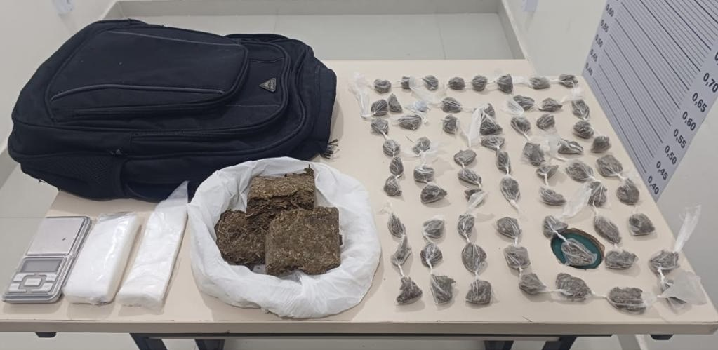 De acordo com informações da Ascom/78ª CIPM, os policiais realizavam rondas ostensivas quando abordaram dois indivíduos que transitavam em um veículo VW Gol. Durante a busca veicular, foi encontrada uma mochila preta no banco traseiro, contendo uma balança de precisão, diversos invólucros utilizados para embalar entorpecentes, 64 petecas de substância análoga à maconha e uma porção adicional da droga já fracionada e pronta para embalo.